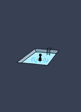 真っ暗闇の中、一人っきりでプールにつかっている。なんとなく怖いシチュエーション。